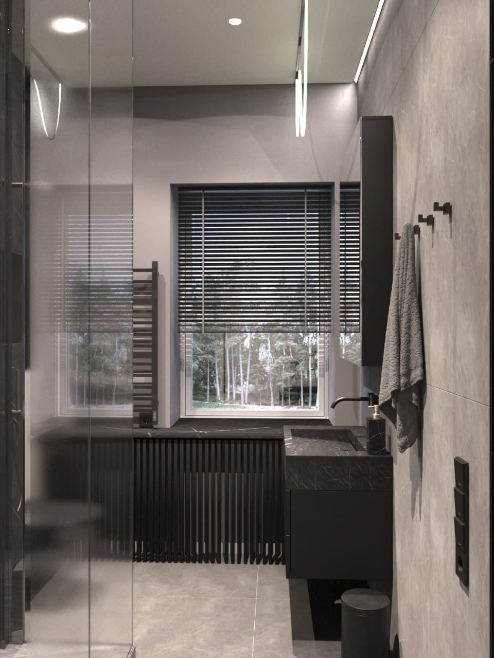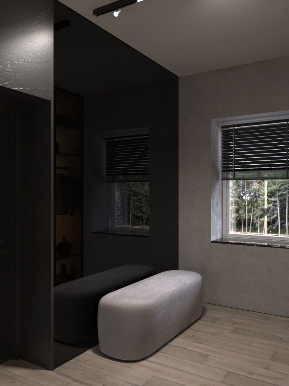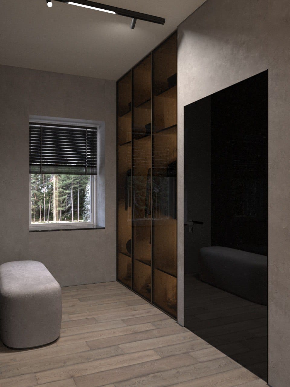 Дом для пары с дочерью. Черное стекло и шпон.